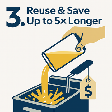 Pour the revitalized oil back into your fryer and keep cooking. Enjoy consistently crisp fries, cut oil waste, and slash your oil spend by up to 5x.